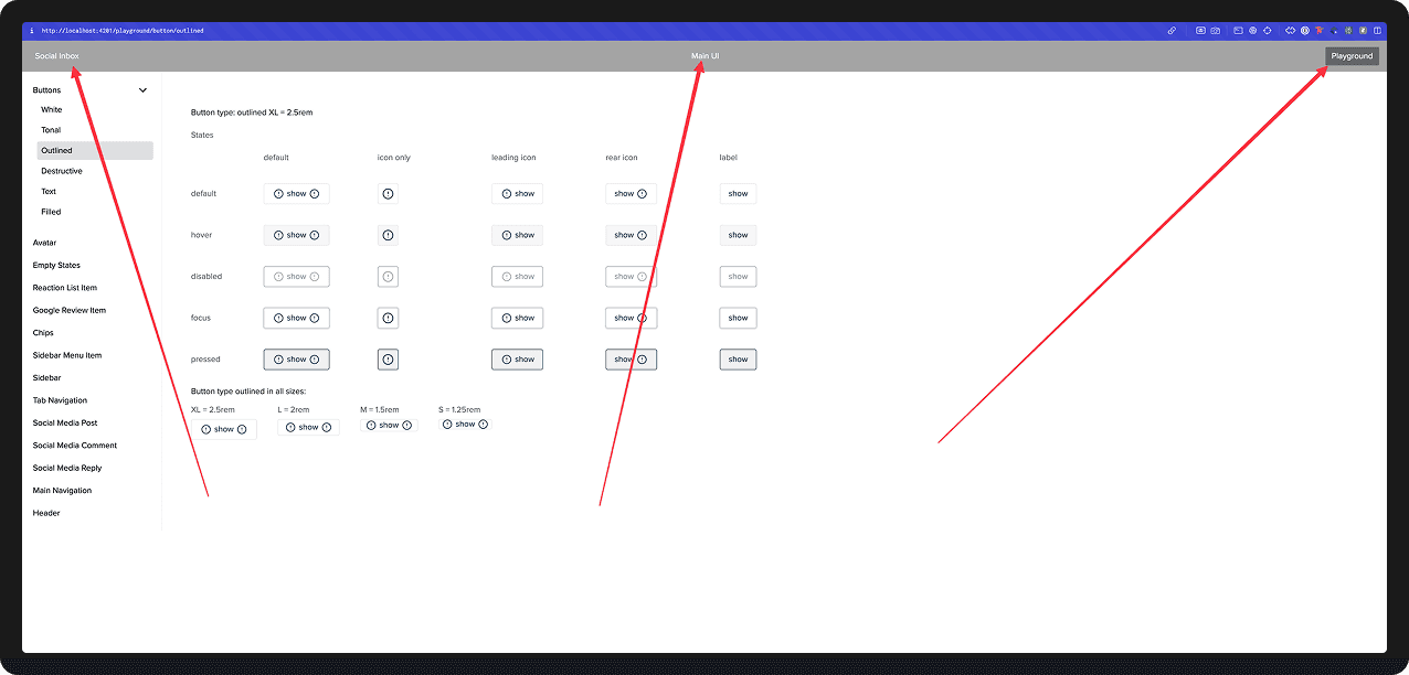 Ich habe begonnen, ein Designsystem direkt im Code zu entwickeln. Ausgangspunkt waren Buttons, Inputs, Badges und so weiter. Ziel war eine Art Figma-Gefühl im Code – mit einer eigenen „Playground“-Umgebung, in der ich alle Komponenten isoliert testen konnte.